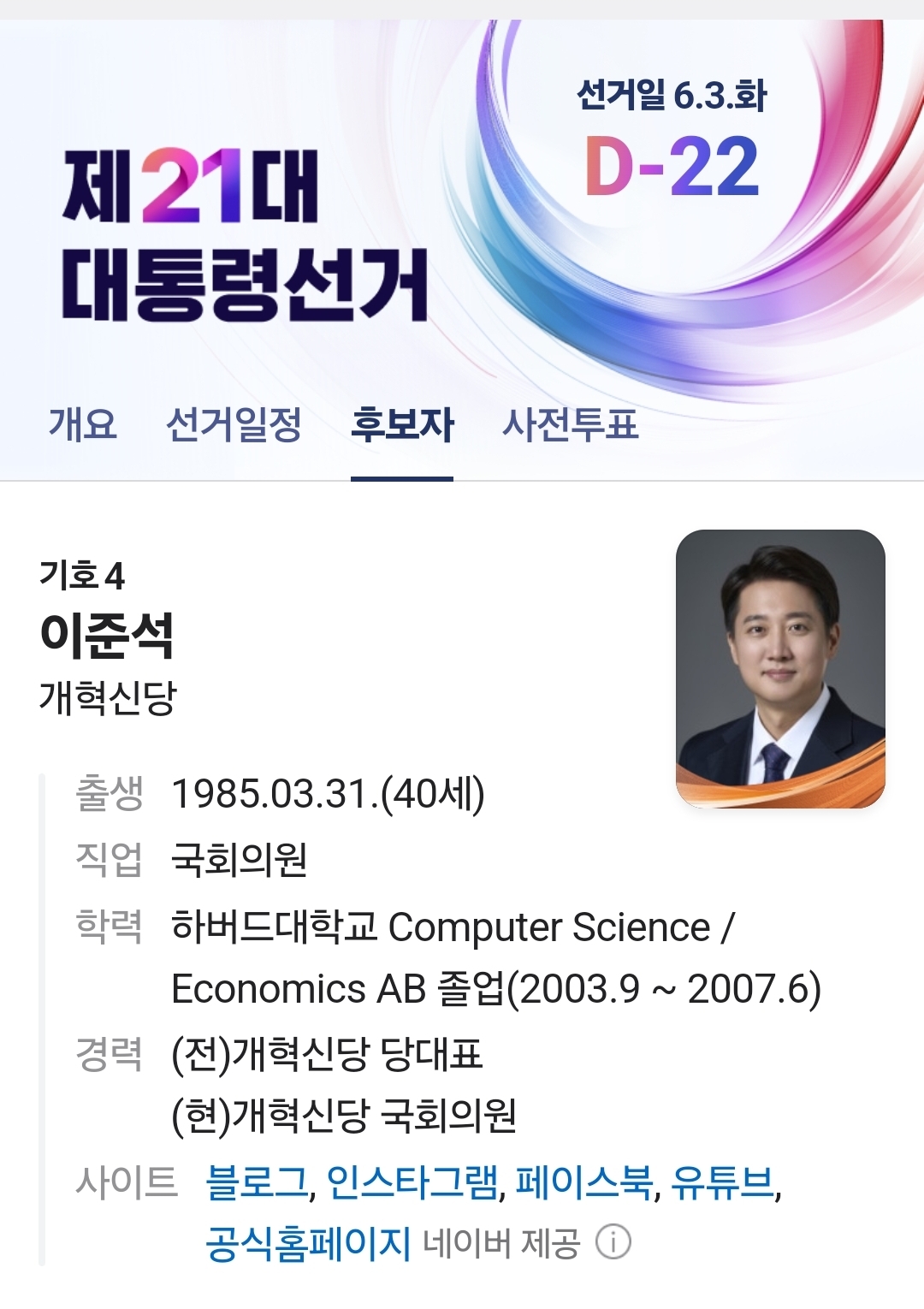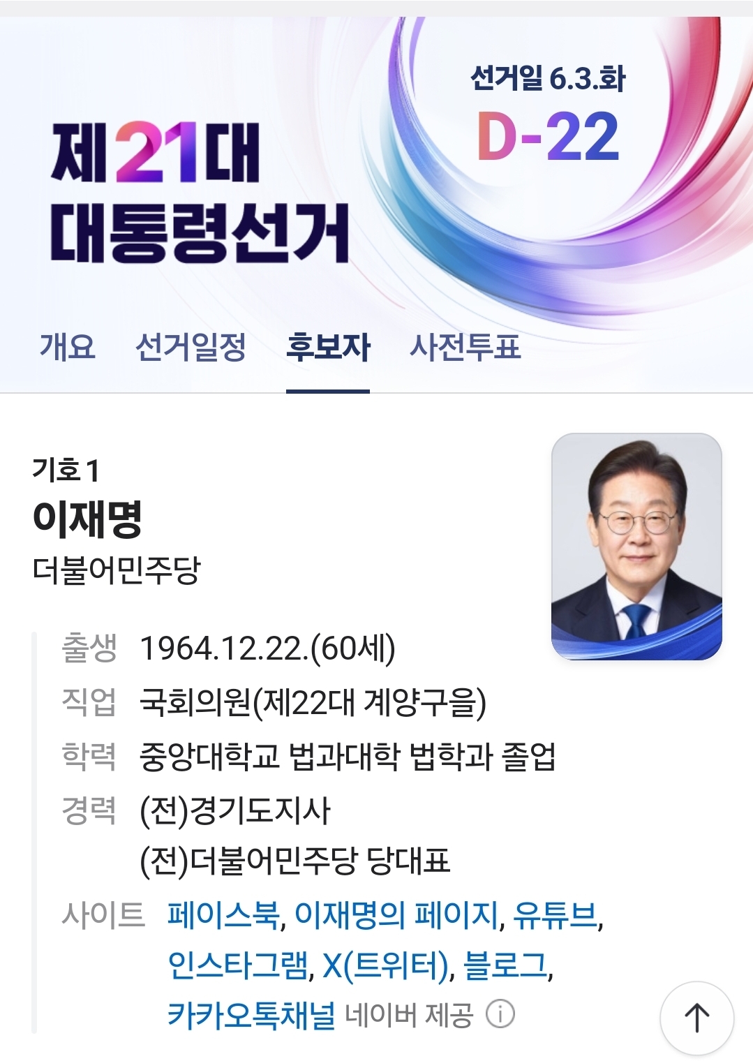 - 최근 여론조사 평균 지지율 5% 이상 후보