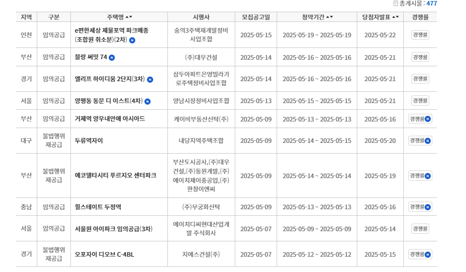 예) LH 한국토지주택공사, 청약홈, 지역주택조합 사이트 등에서 확인 가능