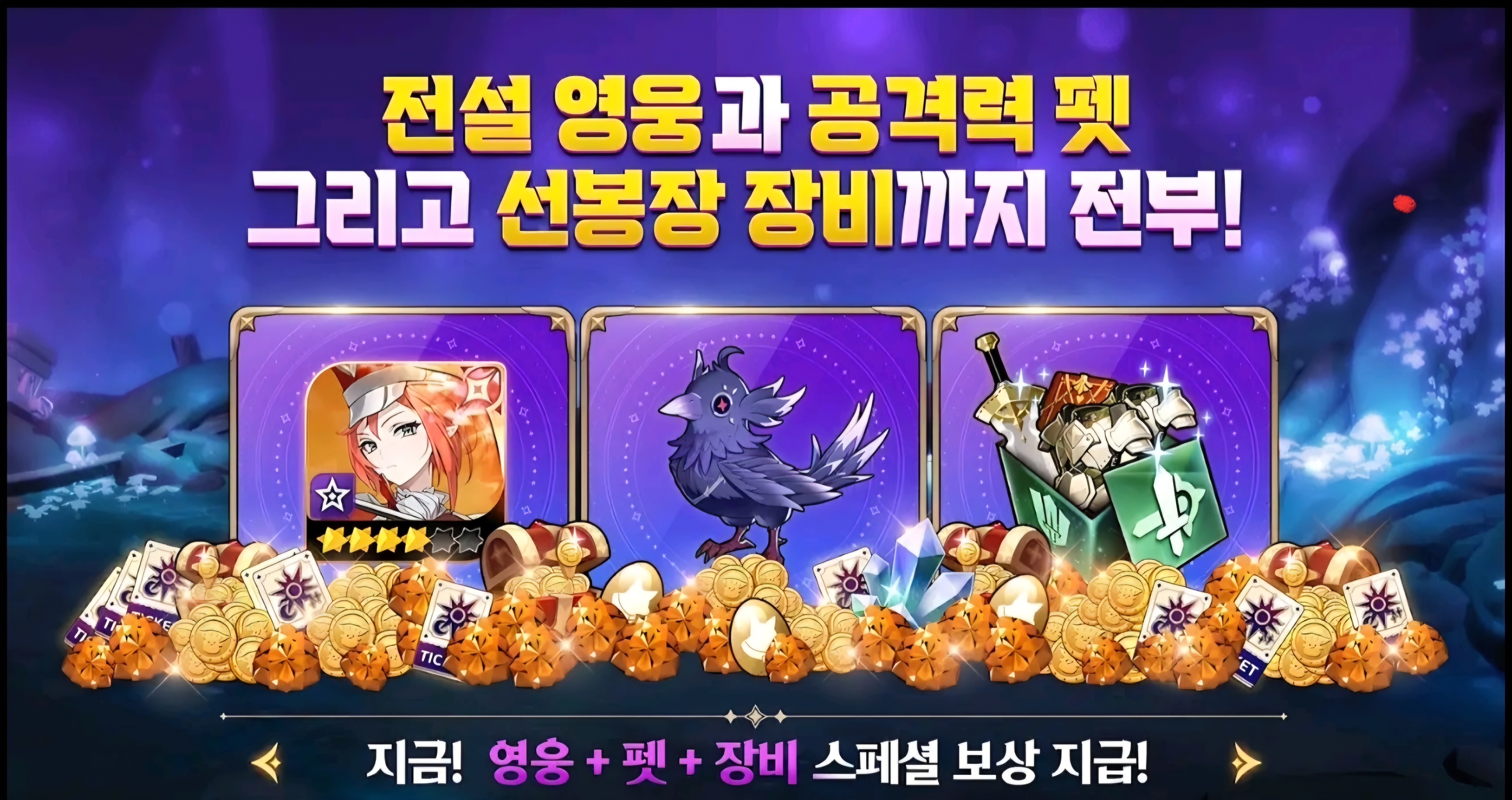 넷마블은 사전등록 보상으로 ★4 영웅 선택권, 골드 30만, 성장 재료 등을 지급하고 있습니다.